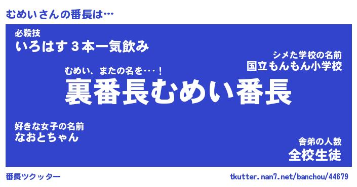 | 2回繰り返すあだ名 | 『むめむめ』『むむめめ』『うずうず』 |