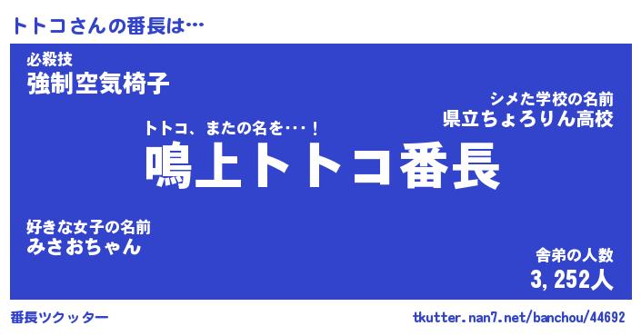 | ヘコむあだ名 | 『トトにー』『牛乳』『トトお』 |
