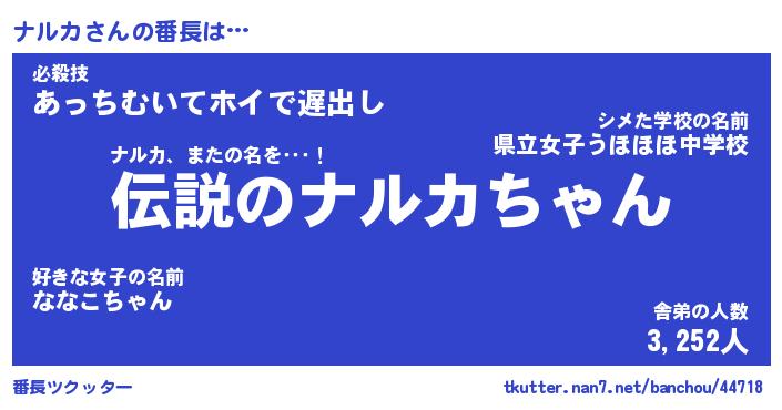 | ヒーロー風カッコイイあだ名 | 『スーパーナルカ』『ウルトラナルカマン』 |
