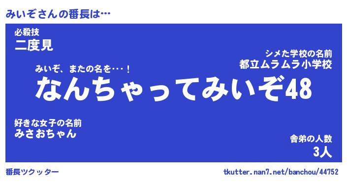 | ヒーロー風カッコイイあだ名 | 『スーパーミイゾ』『ウルトラみいぞマン』 |