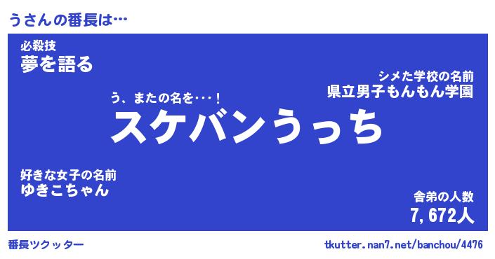 | 伝説のあだ名 | 『不死鳥のスナイパーう』『最古の忍者う』 |