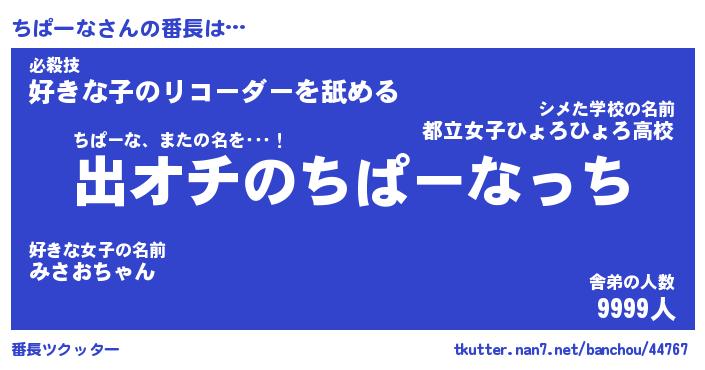 | ヘコむあだ名 | 『ちぱもー』『酢こんぶ』『ちぱっぺ』 |
