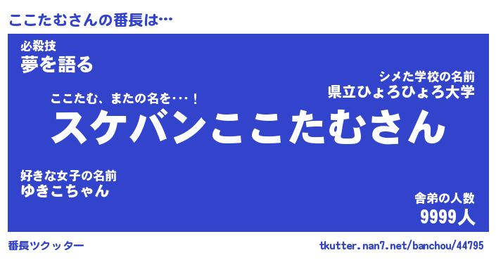 | 意味不明あだ名 | 『ペロリンここたむ』『永久保存ここたむ』 |