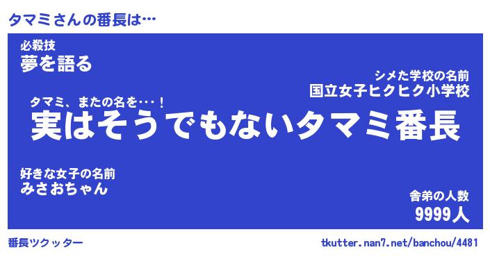 | 意味不明あだ名 | 『ペロリンタマミ』『タマミフォーエバー』 |