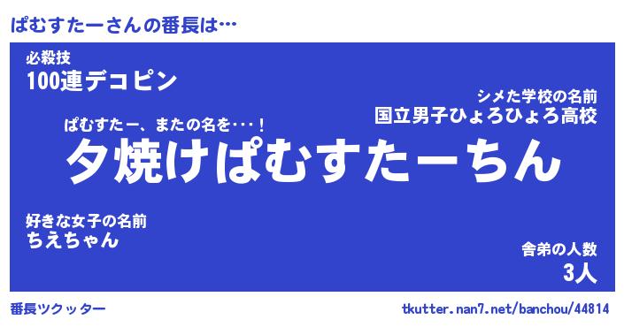 | 肩書あだ名 | 『ぱむすたー店長』『ぱむすたー総理大臣』 |