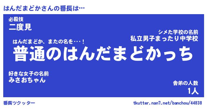 | 肩書あだ名 | 『はんだまどか御曹司』 |