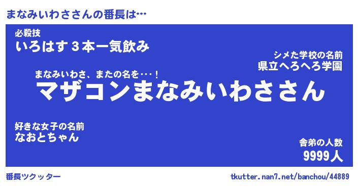 | 肩書あだ名 | 『まなみいわさ店長』『まなみいわさ班長』 |