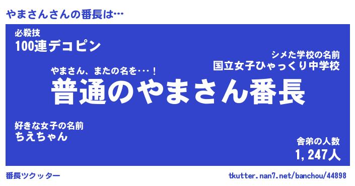 | 意味不明あだ名 | 『ペロリンやまさん』『永久保存やまさん』 |