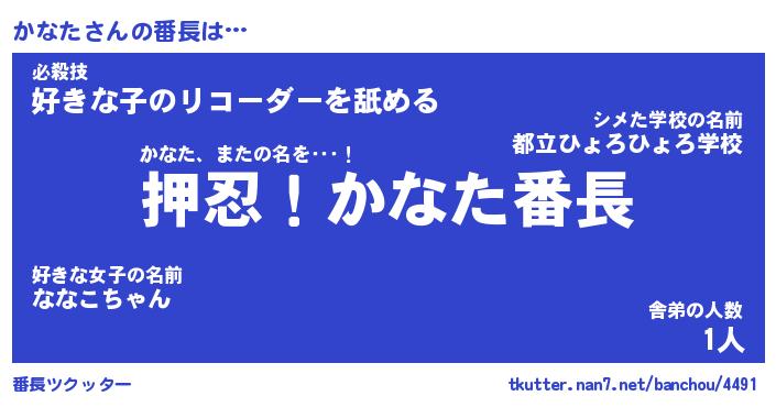 | ヒーロー風カッコイイあだ名 | 『スーパーカナタ』『ウルトラかなたマン』 |