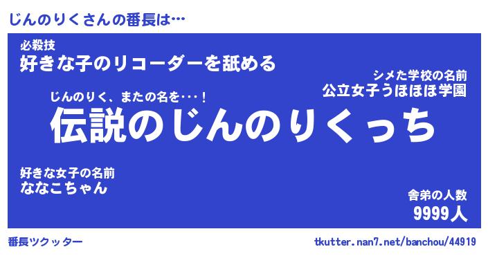 男性向けラノベタイトル風あだ名 | 『じんのりくの憂鬱』 |