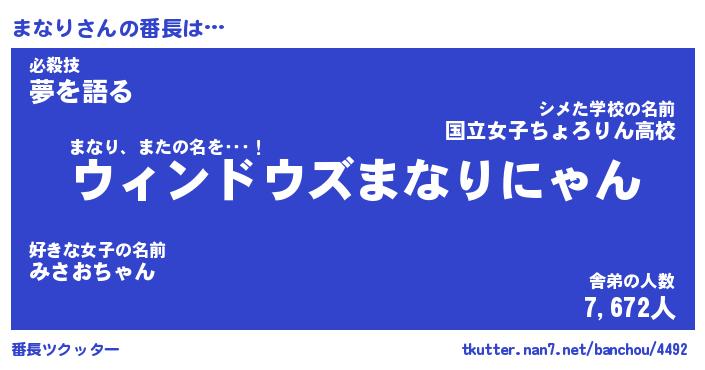 | ヒーロー風カッコイイあだ名 | 『スーパーマナリ』『ウルトラまなりマン』 |