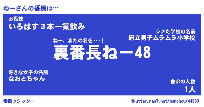 | ヘコむあだ名 | 『ねーにゅー』『なまこ酢』 |