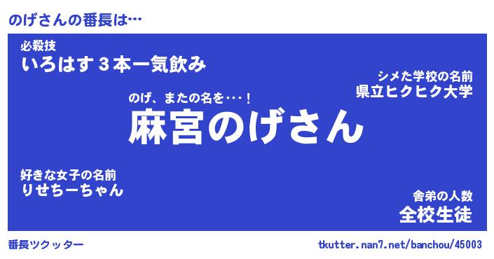 | ヒーロー風カッコイイあだ名 | 『スーパーノゲ』『ウルトラのげマン』 |