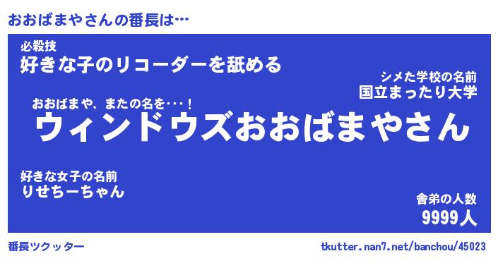 | 肩書あだ名 | 『おおばまやCEO』『おおばまや国家主席』 |