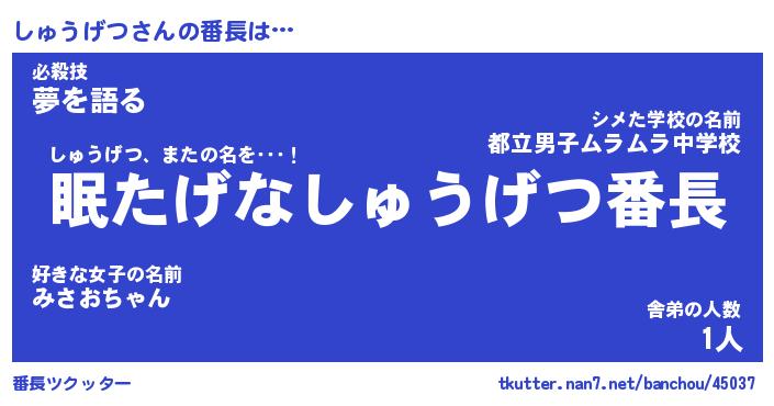 | ヒーロー風カッコイイあだ名 | 『スーパーシュウゲツ』『炎刃騎士シュ』 |