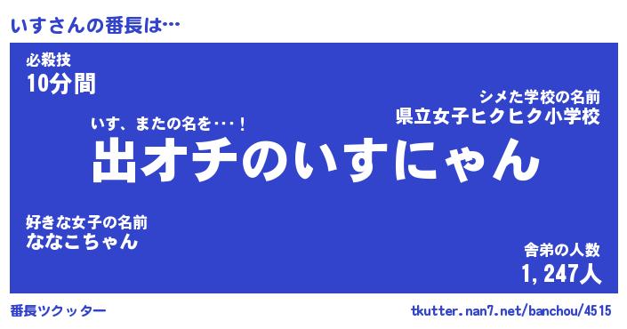 | ヘコむあだ名 | 『いすにー』『牛乳』『いすっちょ』 |