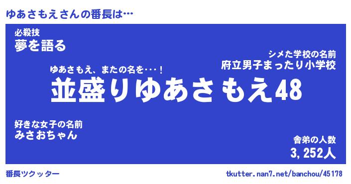 | 肩書あだ名 | 『ゆあさもえ御曹司』『ゆあさもえ班長』 |