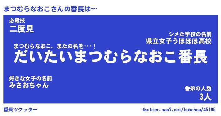 | ヒーロー風カッコイイあだ名 | 『スーパーマツムラナオコ』 |