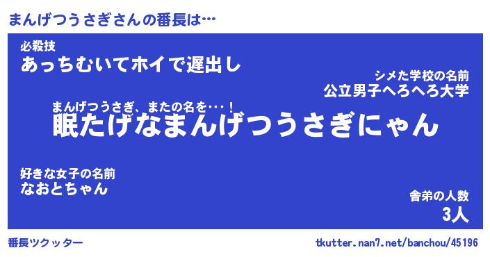 | 意味不明あだ名 | 『ペロリンまんげつうさぎ』 |
