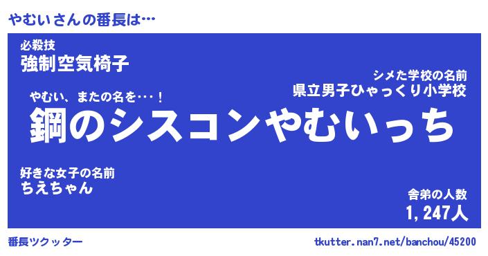 | 伝説のあだ名 | 『封印されし竜騎士やむい』 |