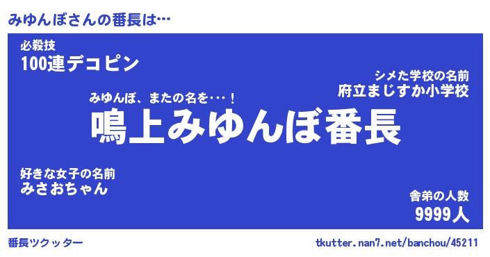 | ピコ太郎風あだ名 | 『ミコ太郎』『ピミ六郎』『ミユ四郎』 |