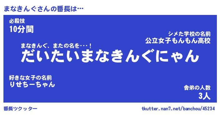 | 肩書あだ名 | 『まなきんぐ社長』『まなきんぐ総理大臣』 |