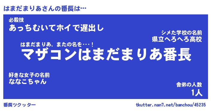 | 肩書あだ名 | 『はまだまりあ御曹司』 |