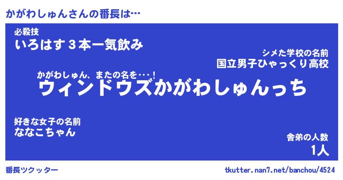 | 男性向けラノベタイトル風あだ名 | 『かがわしゅんの憂鬱』 |