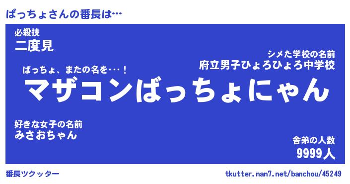 | 意味不明あだ名 | 『ペロリンばっちょ』『永久保存ばっちょ』 |