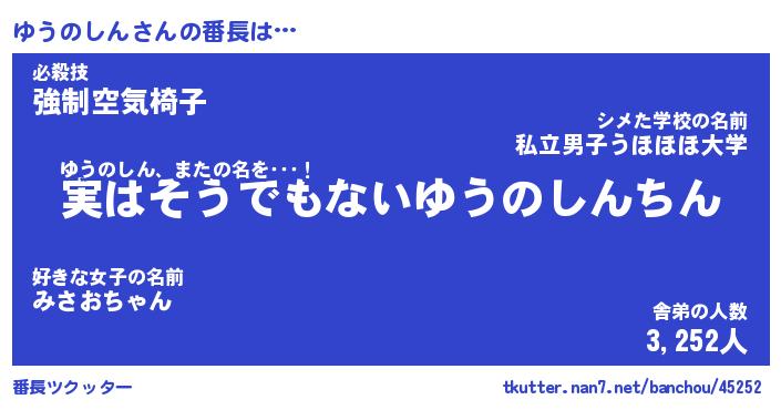 | ヒーロー風カッコイイあだ名 | 『スーパーユウノシン』『幻影騎士ユウ』 |