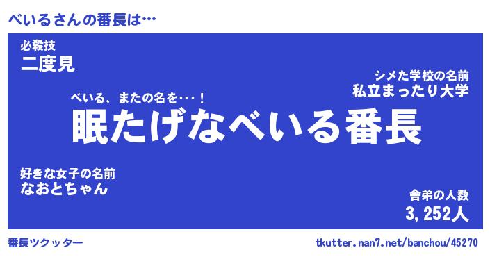 | ヘコむあだ名 | 『べいっふぃ~』『酢こんぶ』 |