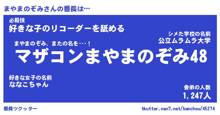 | 肩書あだ名 | 『まやまのぞみ店長』『まやまのぞみ塾長』 |