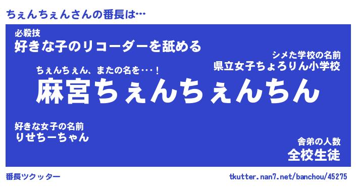 | 意味不明あだ名 | 『ペロリンちぇんちぇん』 |