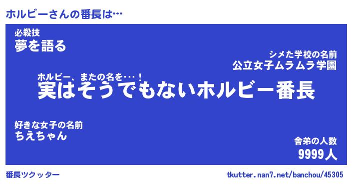 | ヒーロー風カッコイイあだ名 | 『スーパーホルビー』『天弓騎士ホル』 |