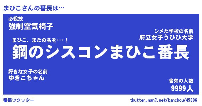 | ヘコむあだ名 | 『まひふぇ~』『つくし』『まひ太郎』 |