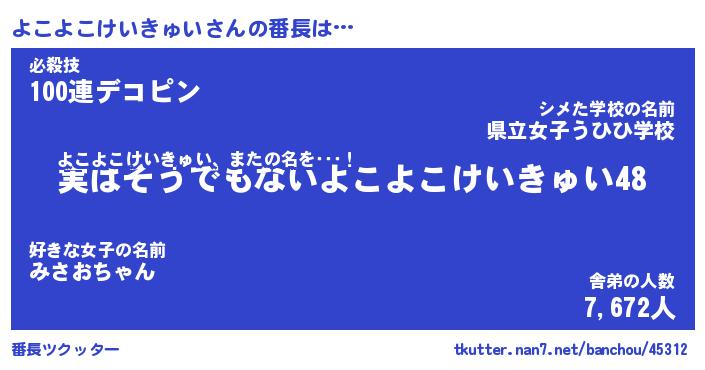 | 伝説のあだ名 | 『封印されしスナイパーよこよこけいきゅい』 |