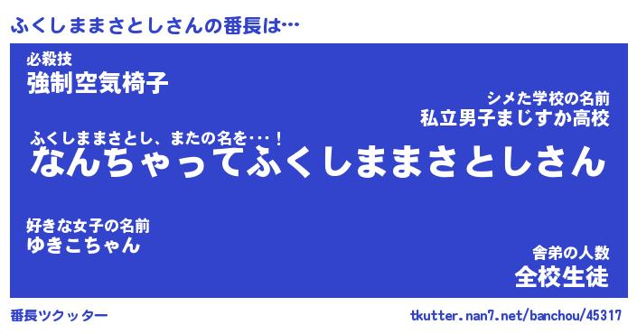 | 肩書あだ名 | 『ふくしままさとし御曹司』 |