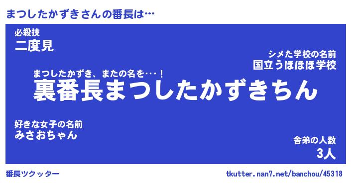 | ピコ太郎風あだ名 | 『マコ三郎』『ピマ一郎』『マツ一郎』 |