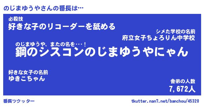 | 恥ずかしいあだ名 | 『プリティーのじまゆうや』『のじっちょ』 |