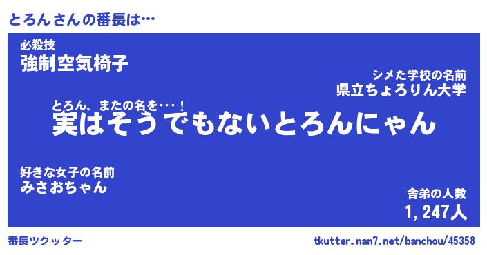 | ヒーロー風カッコイイあだ名 | 『スーパートロン』『ウルトラとろんマン』 |
