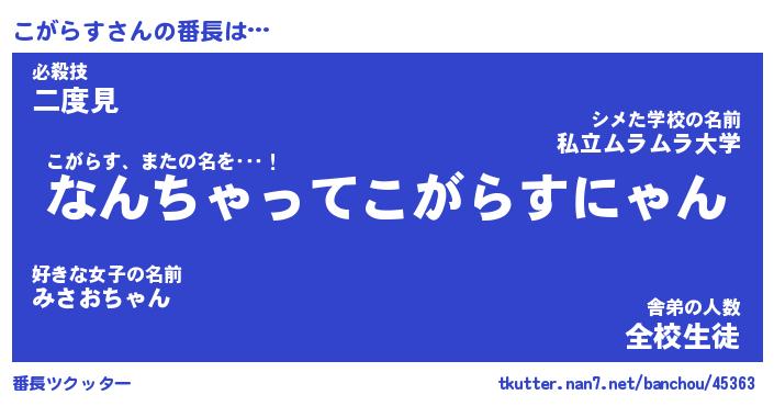 | ファンタジー風あだ名 | 『コガフェル』『エターナルコガラスー』 |