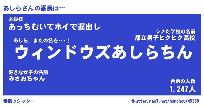 | ファンタジー風あだ名 | 『アシフェル』『エターナルアシラー』 |