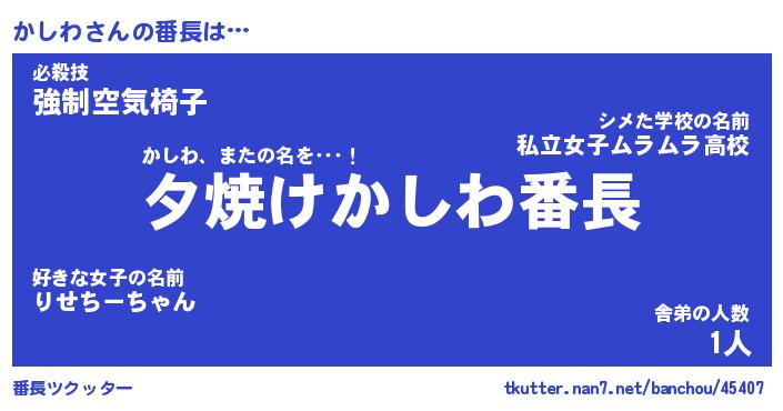 | ファンタジー風あだ名 | 『カシフェル』『エターナルカシワー』 |
