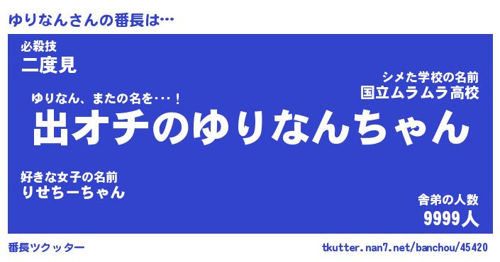 | ピコ太郎風あだ名 | 『ユコ二郎』『ピユ史郎』『ユリ一郎』 |