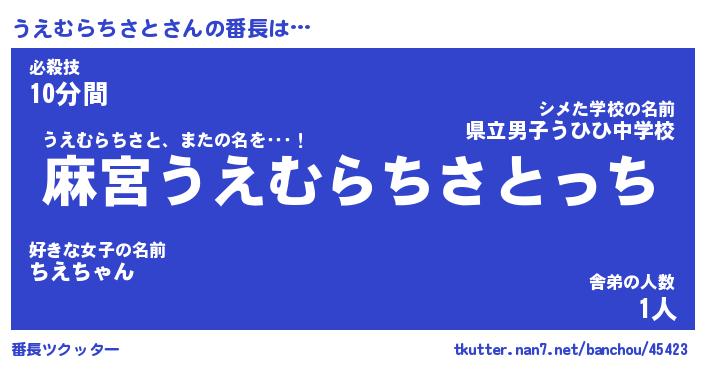 | ピコ太郎風あだ名 | 『ウコ四郎』『ピウ太郎』『ウエ一郎』 |