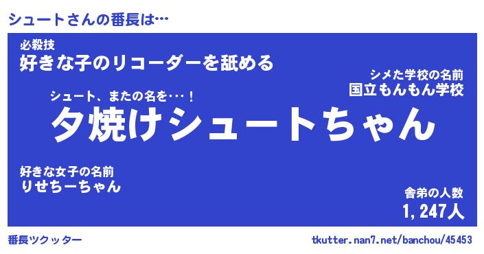 | ファンタジー風あだ名 | 『シュフェル』『エターナルシュートー』 |