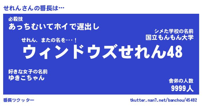 | ヘコむあだ名 | 『せれっふぃ~』『なまこ酢』 |