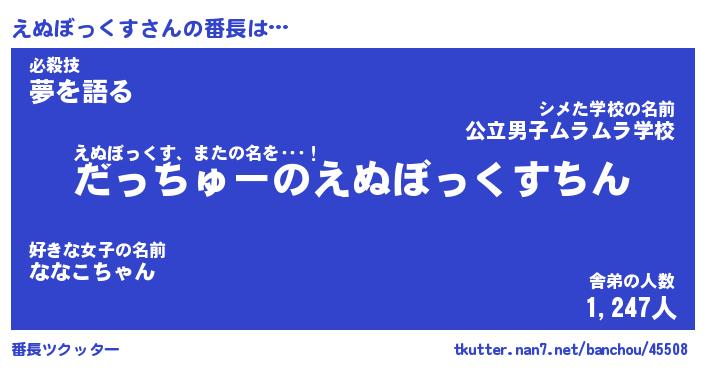 | ポケモン風あだ名 | 『エヌチュウ』『エヌボダネ』 |