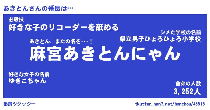 | 肩書あだ名 | 『あきとん社長』『あきとん国家主席』 |