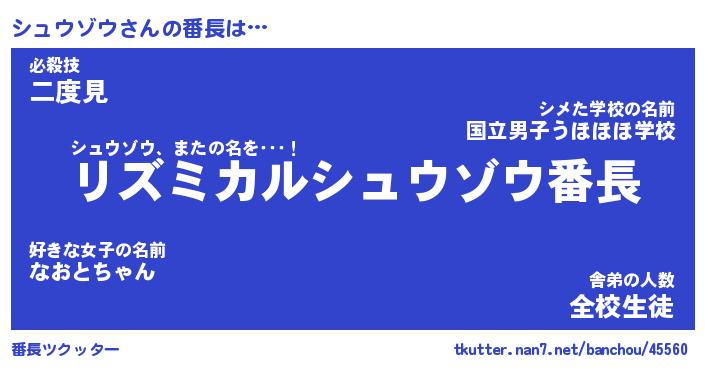 | ヒーロー風カッコイイあだ名 | 『スーパーシュウゾウ』『暗黒騎士シュ』 |